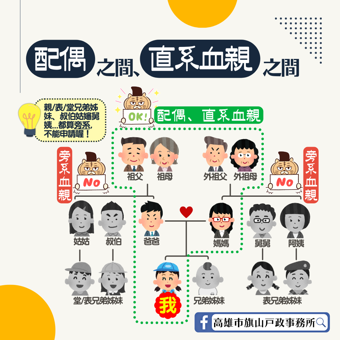 還有誰能請呢?(也就是利害關係人) 特定親屬關係:配偶與直系血親(祖父母、爸媽、子女、孫子女...等) 同戶籍人口:戶長與戶內人口之間(但不含「寄居」人口) 有法律上權利義務得喪變更之關係(應自行舉證): 契約未履行或債務未清償 同為公司行號之股東或合夥人執行職務需要 訴訟當事人經法院通知提出其他當事人戶籍資料 其他有法律上權利義務得喪變更之關係
