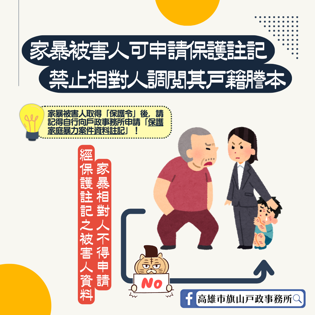 當然也有特殊例外, 家暴被害人如果已取得保護令, 請記得到戶政申請「保護家庭暴力案件資料註記」, 這樣就能禁止家暴相對人申請或調閱該被害人戶籍資料